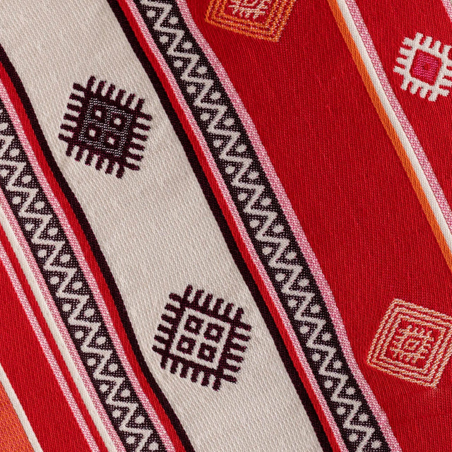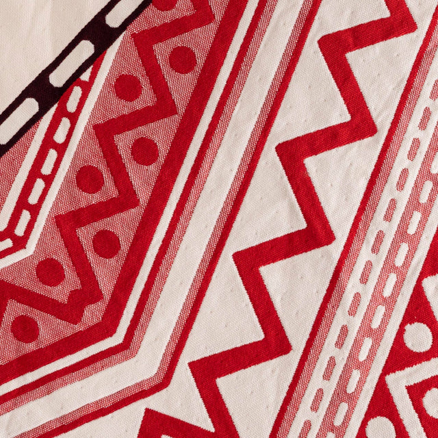 Our textile pattern Fuego symbolizes fire. The Aztec god of fire, warmth and light is Xiuhtecuhtli. In Mesoamerican culture, fire is a fundamental element that not only pervades the entire universe, but also stands for purification, transformation and regeneration of the world.
